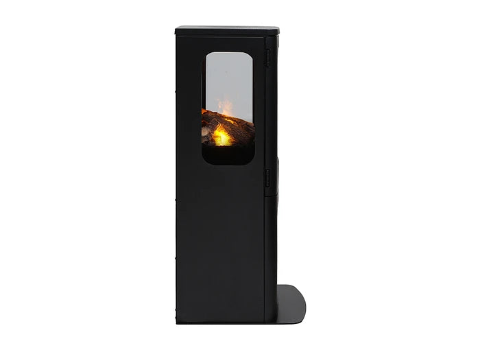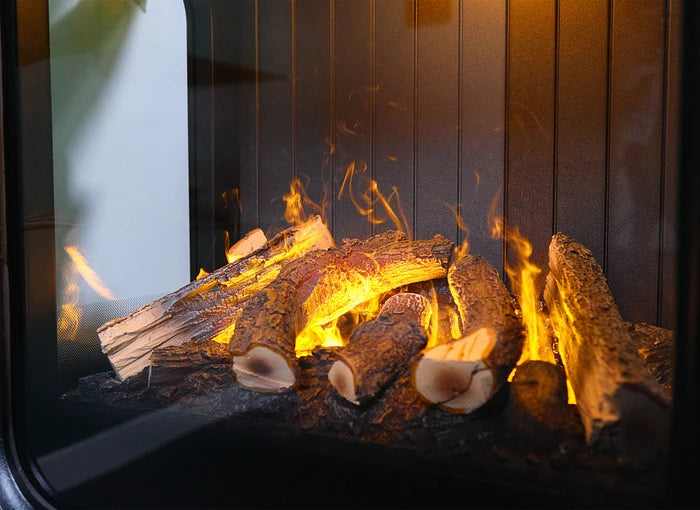 In de kachel creëert de Optimyst®-technologie een levensecht vuurbeeld met zwevende vlammen en waterdamp. Samen met de houtset en het knisperende geluid ontstaat een haardervaring die nauwelijks van echt te onderscheiden is.