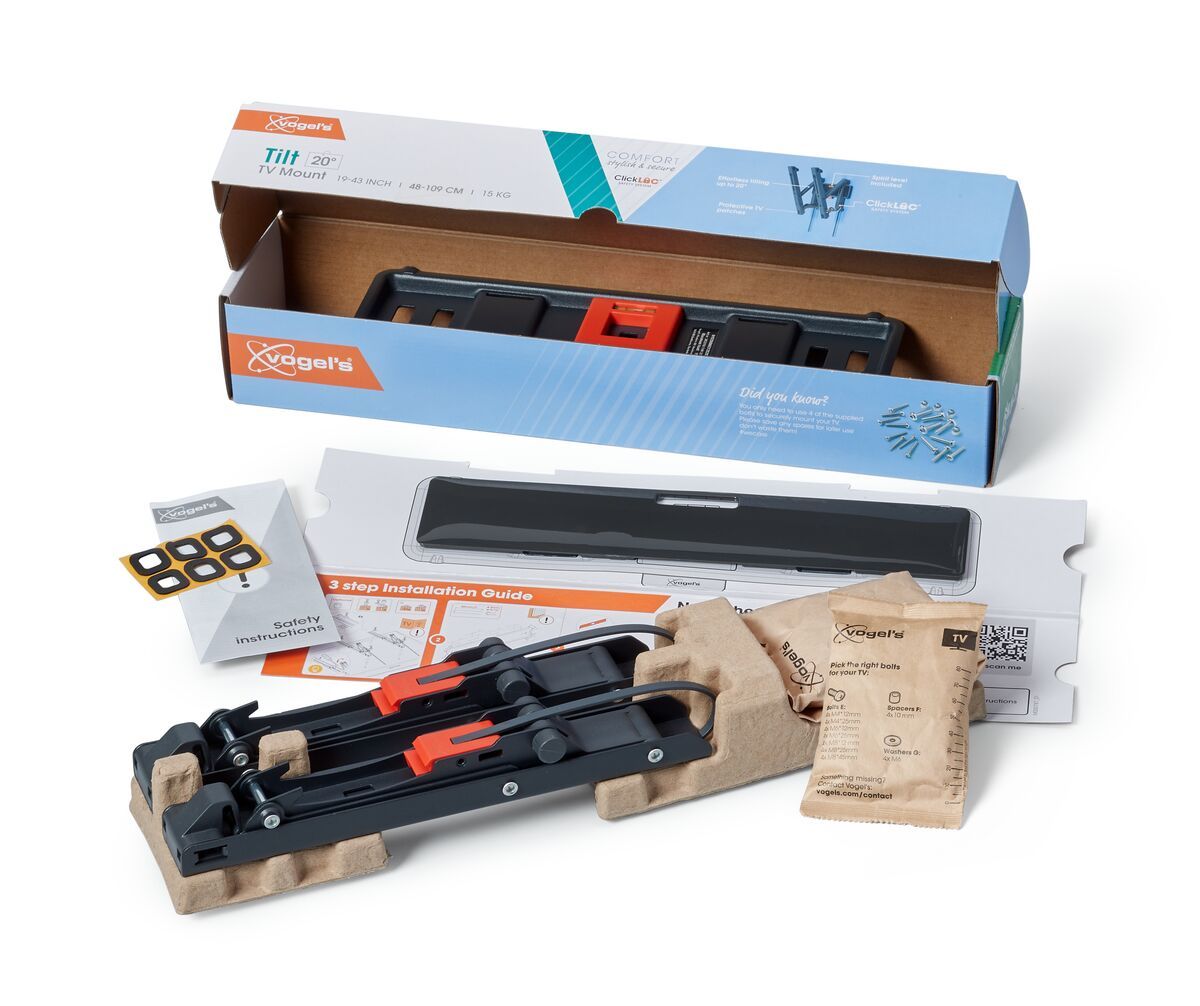 Wil je een kleine tot middelgrote tv hoog aan de muur hangen, dan is de Vogel's Comfort 3215 iets voor jou. Met deze muurbeugel kantel je een tv tot 20 graden naar beneden. Op deze manier is het scherm duidelijk zichtbaar als je televisie iets hoger dan op ooghoogte hangt. Dankzij de waterpas weet je zeker dat je de tv recht aan de wand bevestigt. De muurbeugel is geschikt voor schermformaten van 19 tot en met 43 inch met een maximaal gewicht van 15 kilogram. Heb je hulp nodig bij de installatie, download dan de Vogel's DrillRight app op je smartphone of tablet. Daarnaast voorkomt deze app onnodige gaten door foutjes bij het boren, omdat het de meegeleverde poster gebruikt als herkenningspunt. Die laat jou precies zien waar het eerste boorgat moet komen.