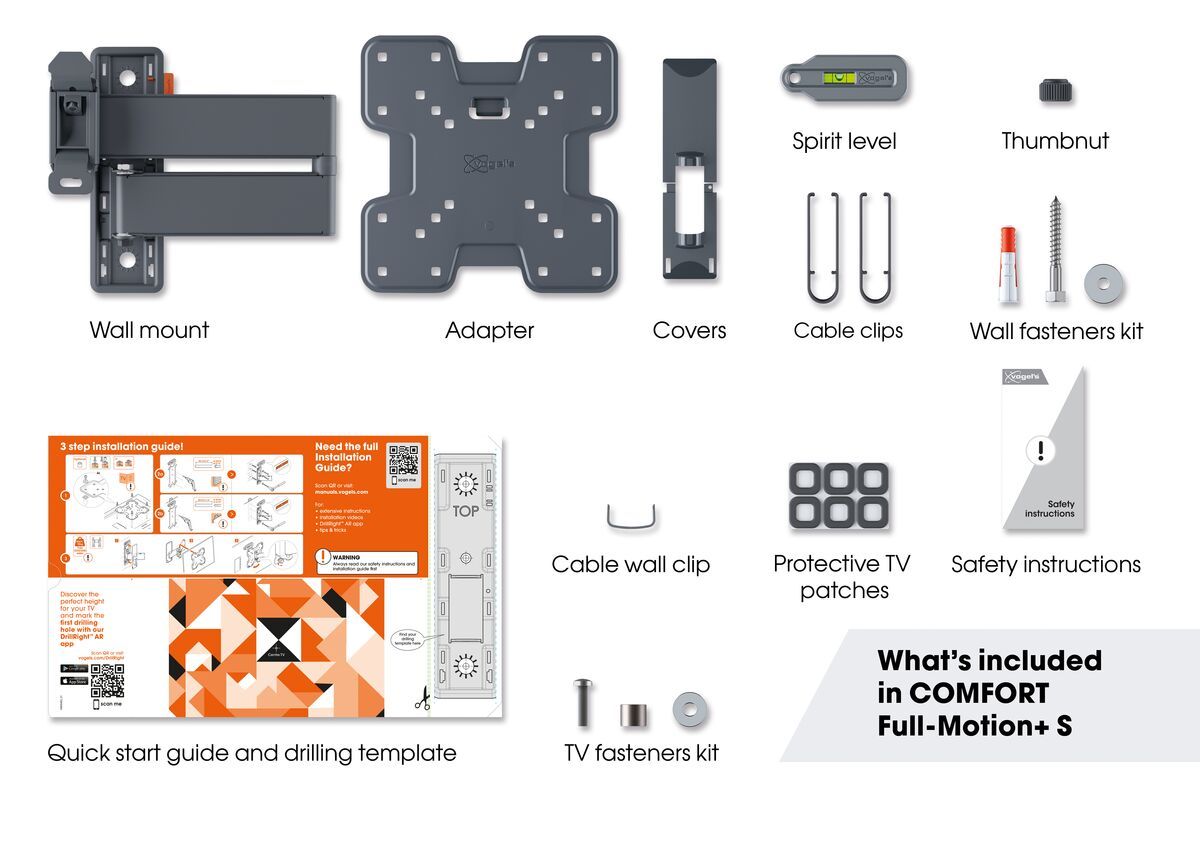 De Vogel's Comfort 3245 is een flexibele beugel waarmee je veilig een kleinere televisie ophangt. Deze beugel is geschikt voor schermen met een inchformaat tussen 19 inch en 43 inch. Dankzij het draai- en kantelbare ontwerp bekijk je vanuit iedere plek in de kamer de optimale beeldkwaliteit. De beugel heeft op 3 plekken een draaimogelijkheid. Zo draai je het scherm naar je kijkpositie en bepaal je zelf hoe dicht het scherm tegen de muur hangt. Hangt je televisie niet op ooghoogte? Dan kantel je gemakkelijk het scherm naar boven of beneden, tot een maximale hoek van 10 graden. Je werkt kabels eenvoudig weg met de meegeleverde kabelclips. Gebruik Vogel's DrillRight app om tijdens de installatie precies te zien hoe en waar je de beugel ophangt. Met de meegeleverde waterpas en de boormal weet je zeker dat de beugel kaarsrecht hangt.