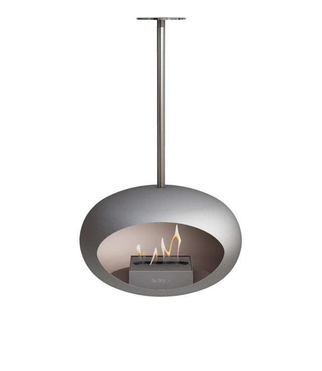De Le Feu – Nickel Sky valt op door zijn unieke plafondbevestiging, waardoor de haard luchtig en gewichtloos lijkt te zweven. De elliptische koepel verspreidt een zachte, rustgevende warmte en creëert een uitnodigende sfeer zonder ook maar een centimeter vloerruimte in te nemen. Voor wie op zoek is naar een stijlvolle blikvanger met een verfijnde uitstraling, vormt de Nickel Sky een uitzonderlijke keuze.