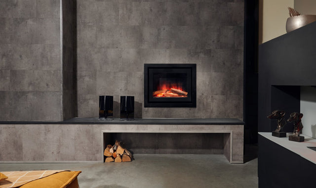 La série Element4 Elite continue de s'agrandir. Element4 présente cette fois un insert électrique avec un effet de flammes d'un réalisme saisissant. Mesurant 64 cm de large et 48 cm de haut, ce foyer est doté d'un élégant cadre à quatre faces. Pour un look encore plus original, un cadre à trois faces est également disponible en option.
