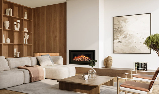 La série Element4 Elite continue de s'agrandir. Element4 présente cette fois un insert électrique avec un effet de flammes d'un réalisme saisissant. Mesurant 90 cm de large et 58 cm de haut, ce foyer est doté d'un élégant cadre à quatre faces. Pour un look encore plus original, un cadre à trois faces est également disponible en option.