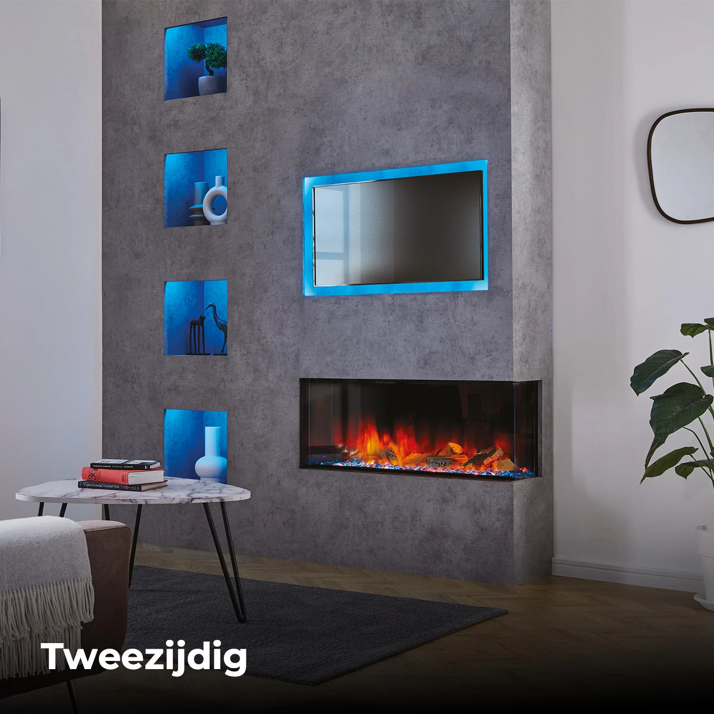 Son design offre des possibilités infinies, permettant aux cheminées de prendre une place centrale dans votre intérieur, qu'elles soient intégrées à des bibliothèques, des meubles TV et audio ou des éléments muraux élégants. Les bandes lumineuses LED d'ambiance, disponibles en option et mesurant jusqu'à 6 mètres de long, sont pilotables via la télécommande de la cheminée et s'intègrent à votre intérieur selon vos envies.