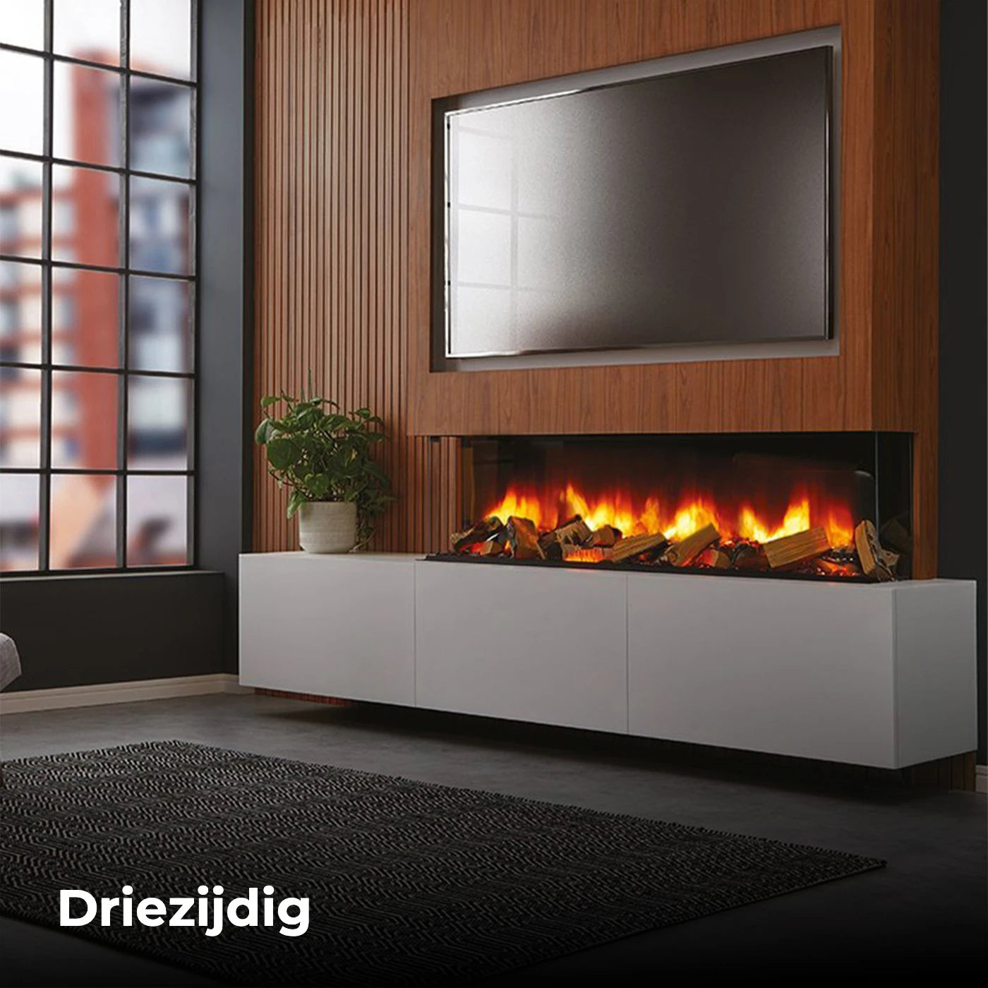 Le Charlton & Jenrick Polaris 1600 mm offre trois vues de feu différentes. Il peut ainsi être installé en façade, sur deux ou trois faces. Il s'intègre parfaitement à vos besoins !