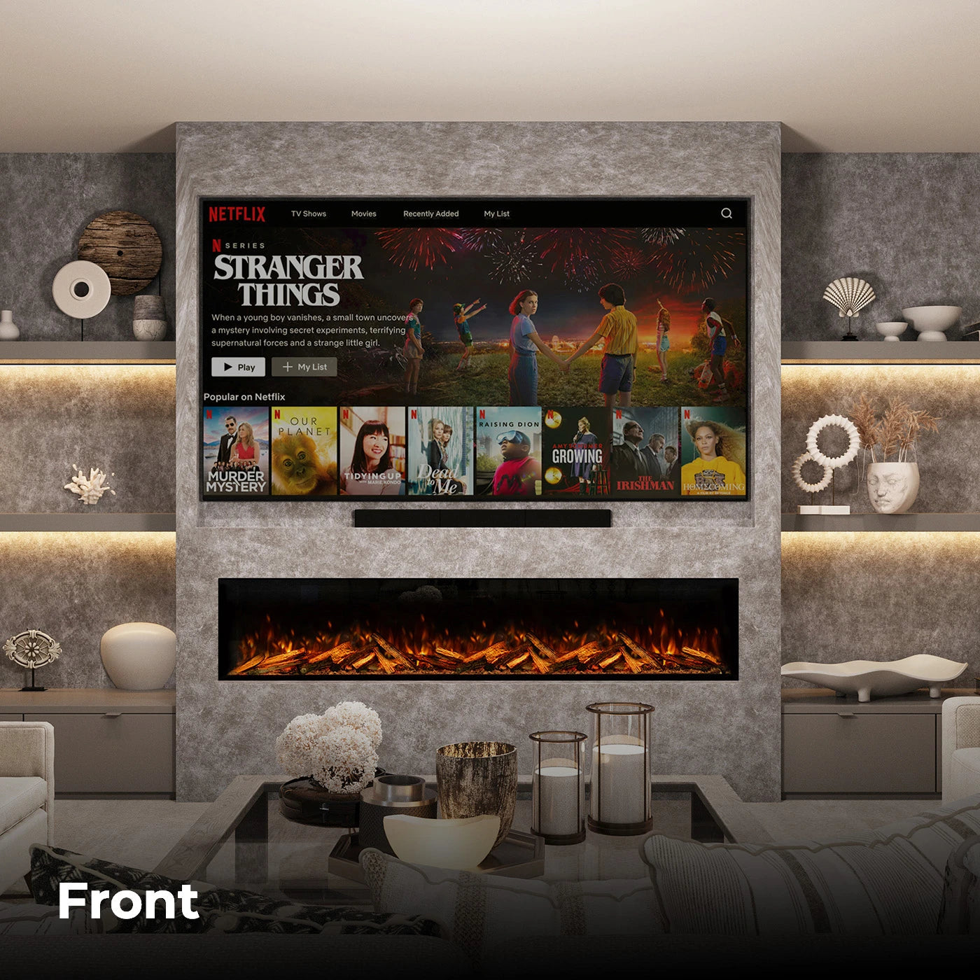 Maak kennis met een van de grootste elektrische inbouwhaarden op de markt: de Fair Fires Tru Vizion Pano X 2000. Deze elektrische haard is gegarandeerd het middelpunt van elke ruimte. Met onder andere touch bediening biedt de Pano X drie instelbare standen voor vlamsnelheid, vlamkleur en bodemverlichting, zodat u uw vuurervaring kunt aanpassen aan uw persoonlijke voorkeur.