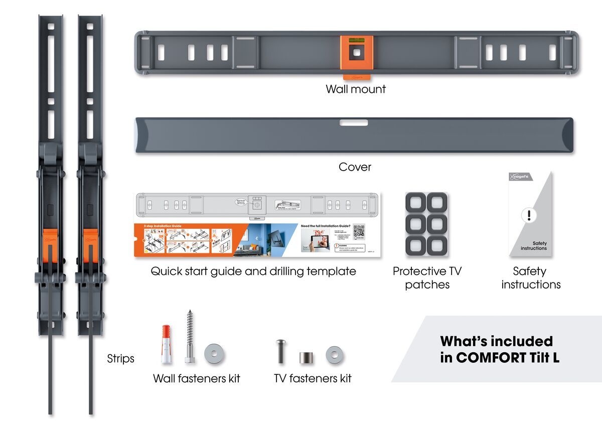 Le support mural inclinable Vogel's Comfort 3615 est conçu pour les téléviseurs de 40 à 77 pouces. Ce support permet d'incliner facilement votre téléviseur jusqu'à 20 degrés pour un angle de vision optimal. Il supporte un poids maximal de 35 kg et est équipé du système de sécurité ClickLoc, qui verrouille la télévision en toute sécurité. L'installation est simplifiée grâce à tous les éléments inclus, au niveau intégré et au guide d'installation rapide. L'application DrillRight AR de Vogel's facilite le marquage du premier trou de perçage. Le Vogel's Comfort 3615 est certifié TÜV et testé jusqu'à trois fois son poids maximal, garantissant ainsi le respect des normes de sécurité les plus strictes.